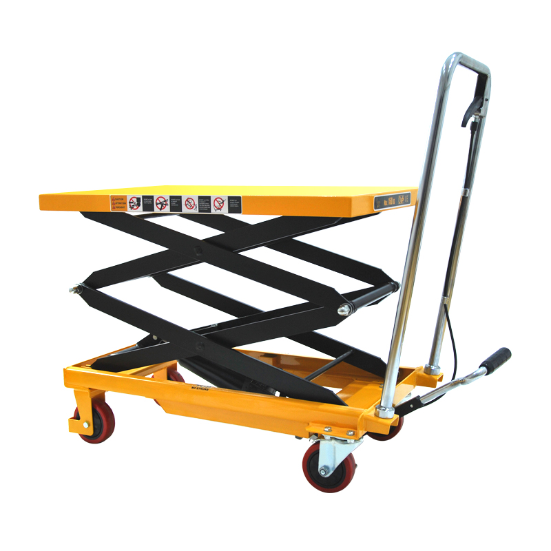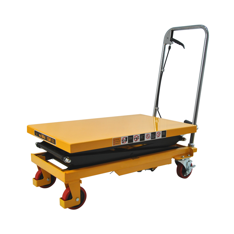 The lift table can be smoothly raised and lowered through a manual hydraulic device, making it easy to handle and load/unload small and medium-sized goods.
